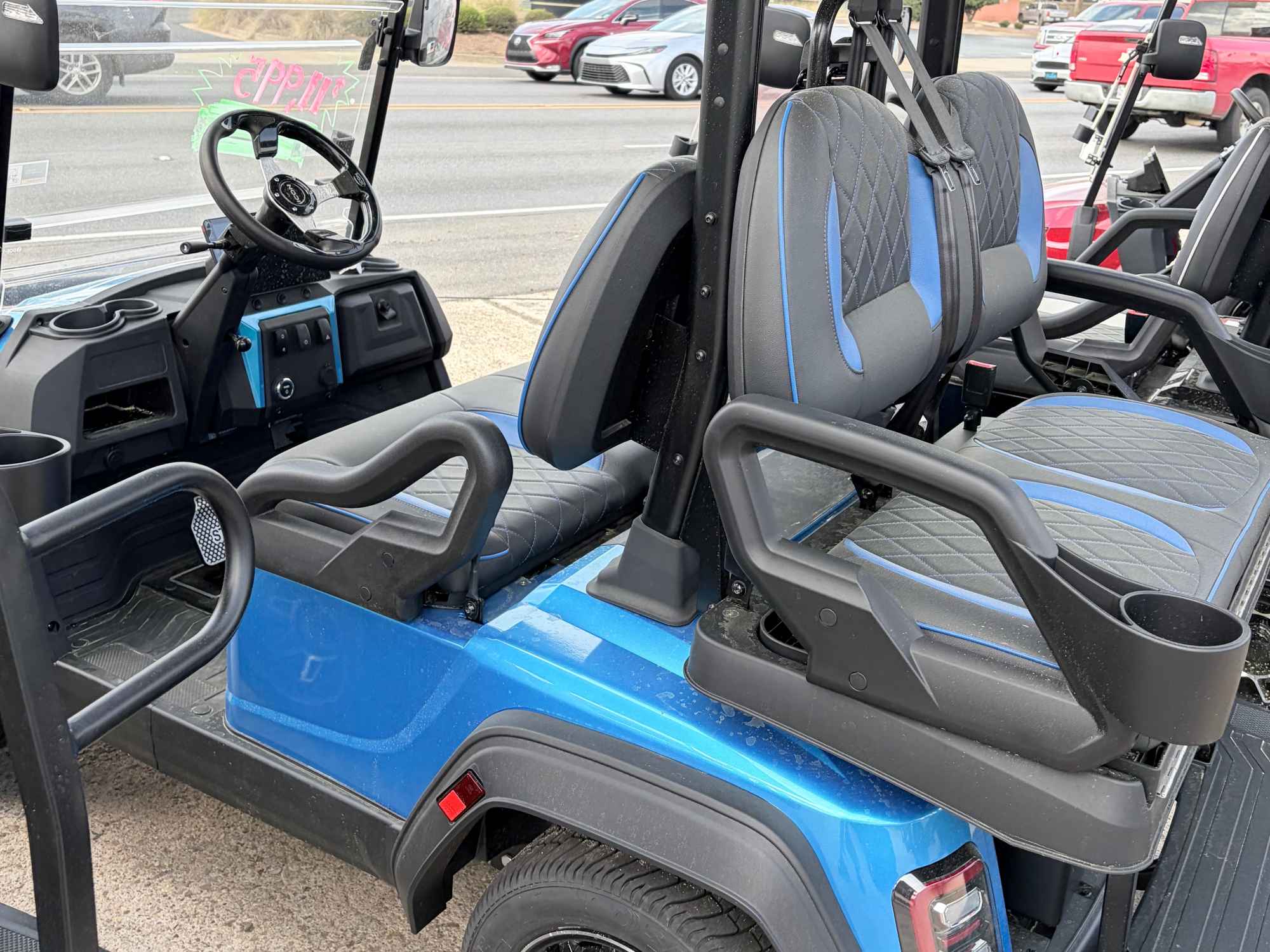 The brand new EPIC FX40 is the best golf cart on the market today! Furnished with every imaginable feature, the forward-facing four-seater EPIC FX40 comes in six stylish colors and two height options. Premium 14” wheels and street-ready tires provide a solid foundation for every journey on every terrain, no matter what lift height is selected. With an abundance of storage, superior built-in marine-grade sound system and speakers, and stunning accent lighting, this EPIC golf cart illuminates the possibilities for fun and adventure.